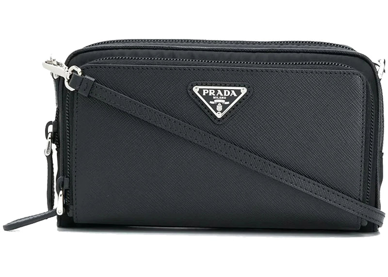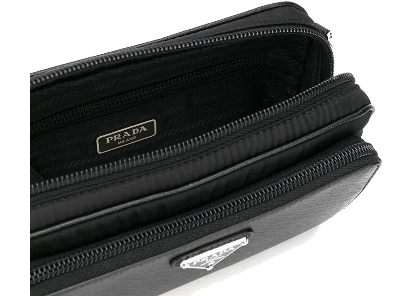 Prada Triangle Logo Plaque Crossbody Bag Black