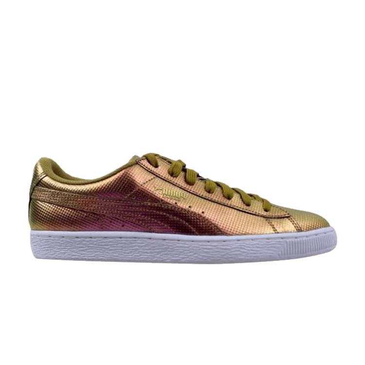 The Puma Basket Classic Holographic Gold is now available at Side Kicks!