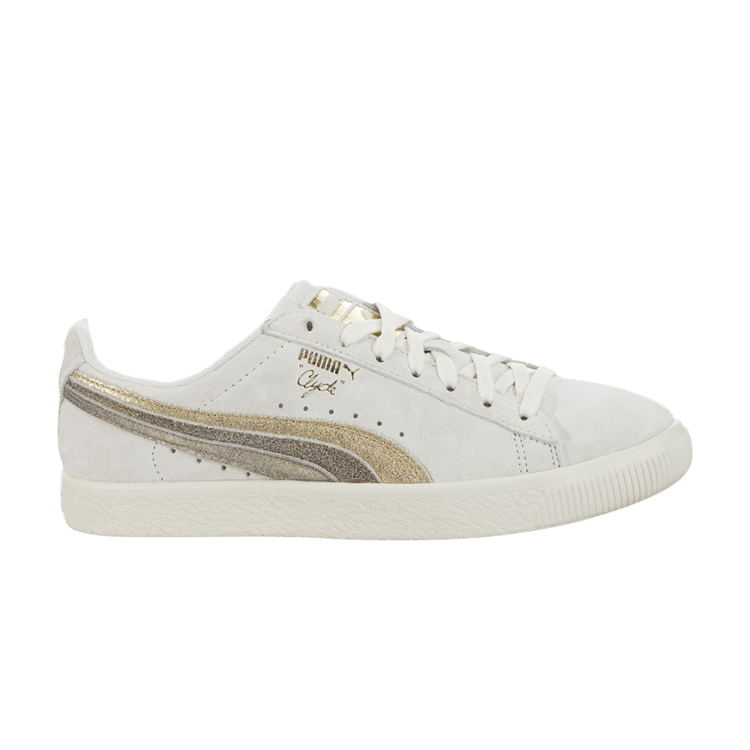 The Puma Clyde Metal Leather Whisper White Gold Bronze (Women's) is now available at Side Kicks!