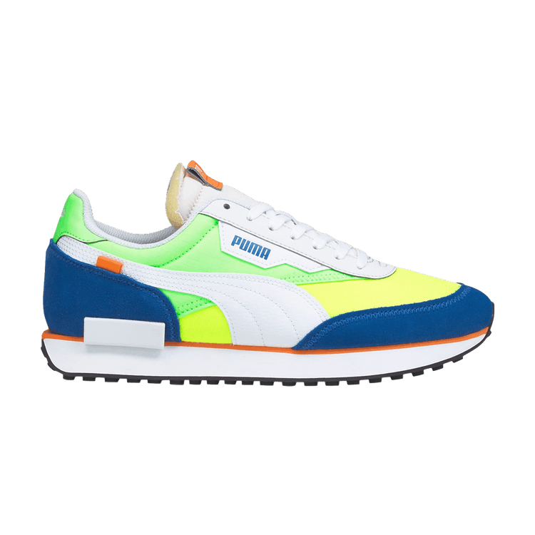 The Puma Future Rider Play On White Fizzy Lime Royal is now available at Side Kicks!