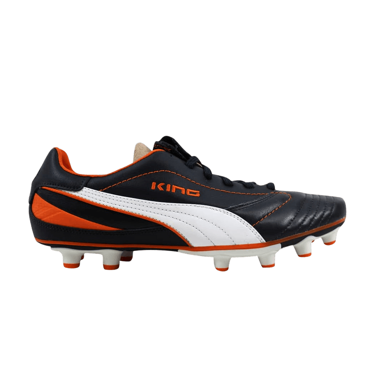 The Puma King Finale I FG New Navy/White-Team Orange (Women's) is now available at Side Kicks!