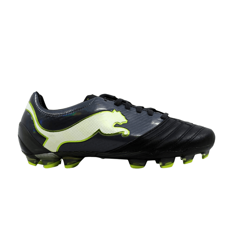 The Puma Powercat 1.12 FG Black/Dark Shadow-White-Lime Punch is now available at Side Kicks!