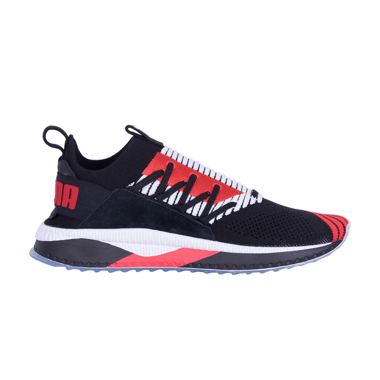 The Puma Tsugi Jun Cubism Black White Scarlet is now available at Side Kicks!