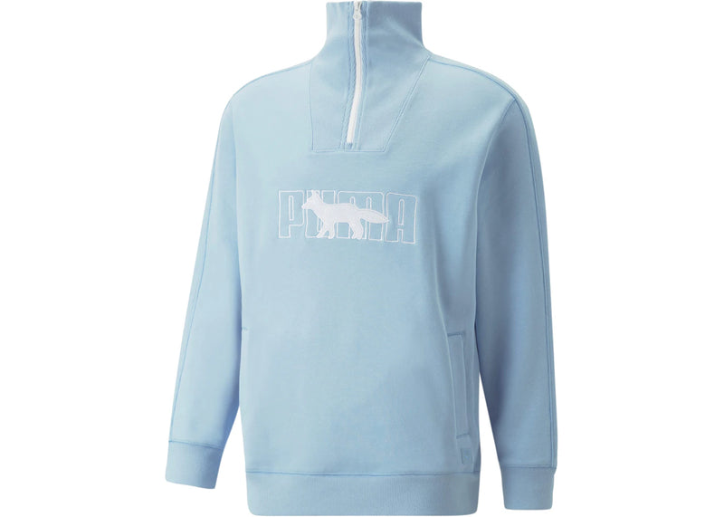 The Puma x Maison Kitsune Half-Zip Sweater Blue is now available at Side Kicks!