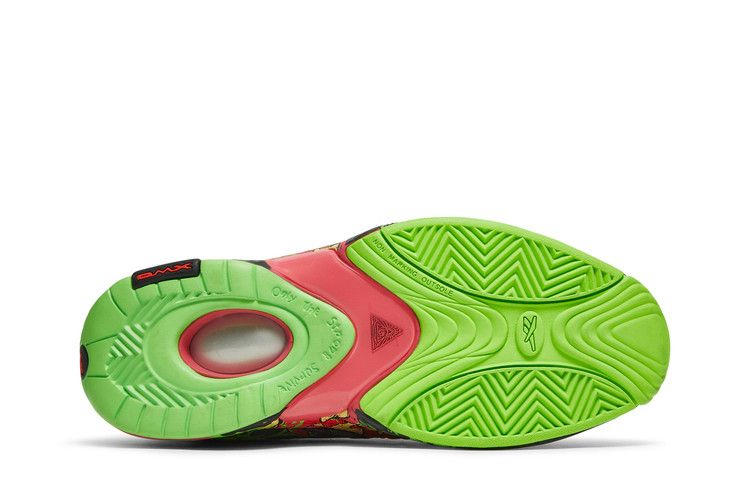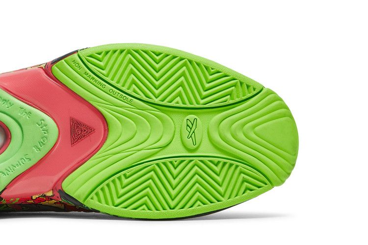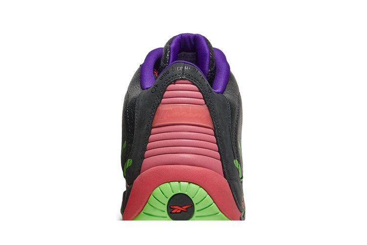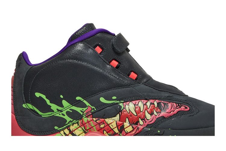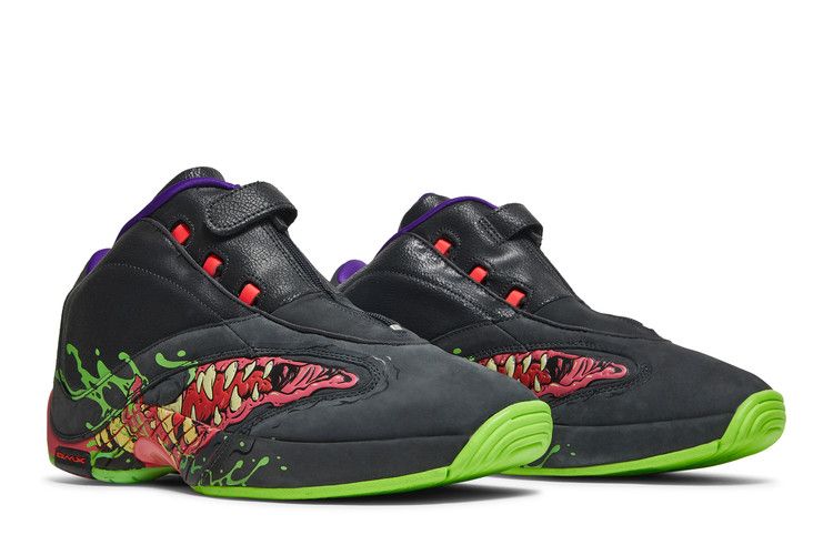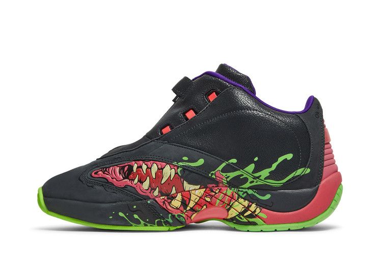The Reebok Answer IV Ghostbusters Zuul features a mid-top silhouette with a zip-up shroud covering the laces. Constructed from leather and synthetic materials, it showcases a black base with red and green graphics of the demonic canine character. The chunky sole combines black, red, and green, while DMX technology provides responsive cushioning. Released on October 13, 2021, the Reebok Answer IV Ghostbusters Zuul is available now at Side Kicks.
