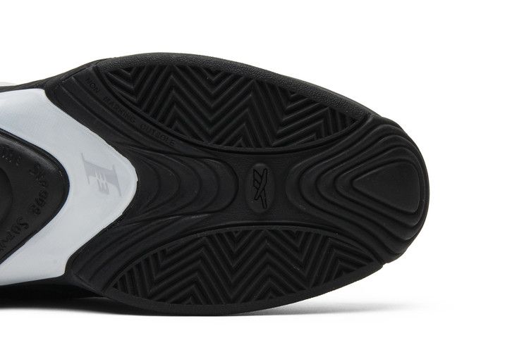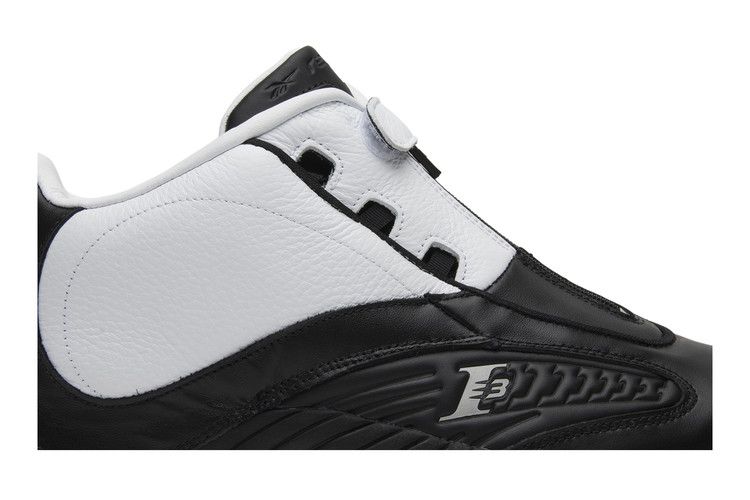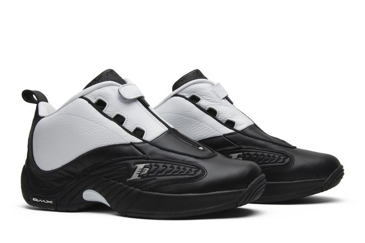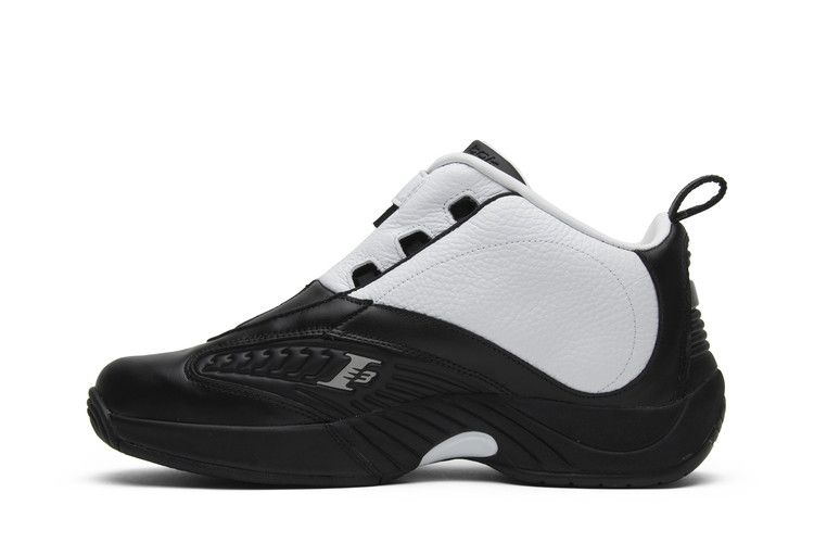 The Reebok Answer IV Stepover commemorates Allen Iverson’s 2001 NBA finals performance. Its two-tone upper features a black leather vamp and white quarter panels, accented by the "I3" logo on...