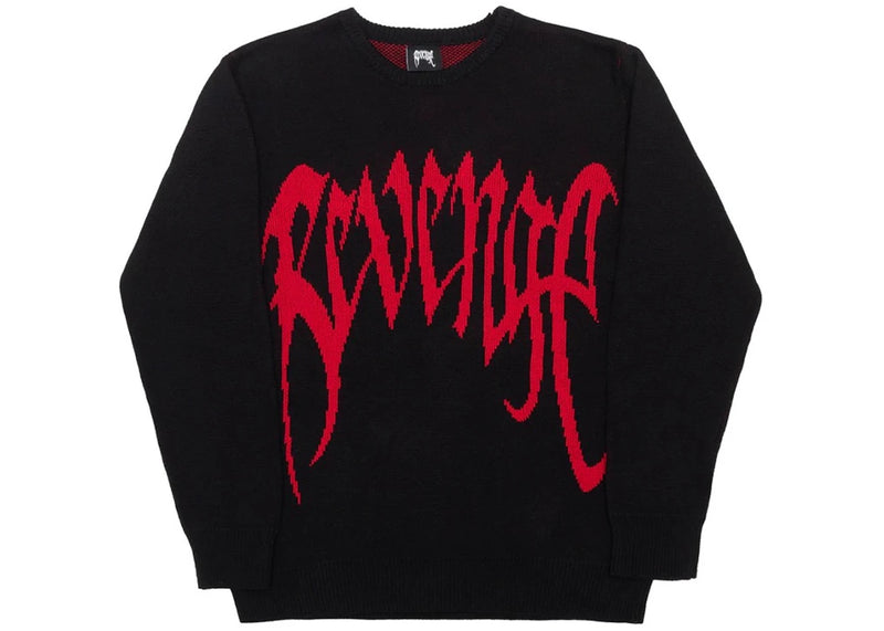The Revenge Knit Logo Crewneck Sweater Black/Red is now available at Side Kicks!