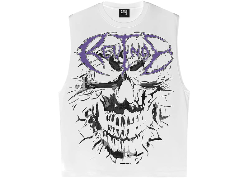 The Revenge Skull Flame Cut Off Tank Cream is now available at Side Kicks!