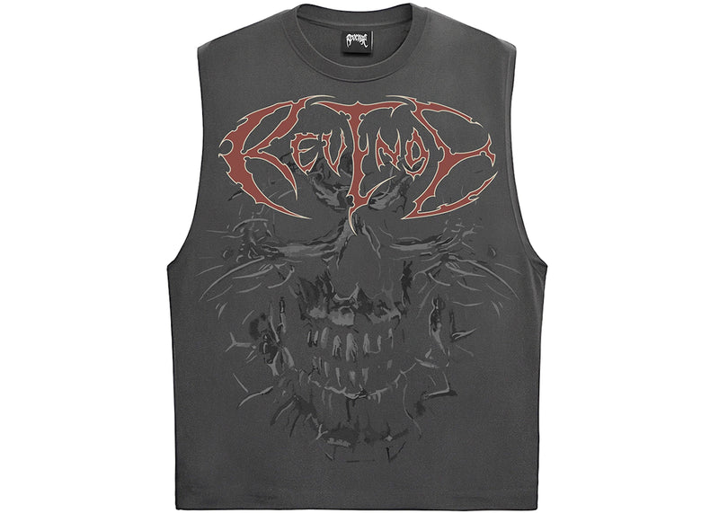 The Revenge Skull Flame Cut Off Tank Vintage Black is now available at Side Kicks!
