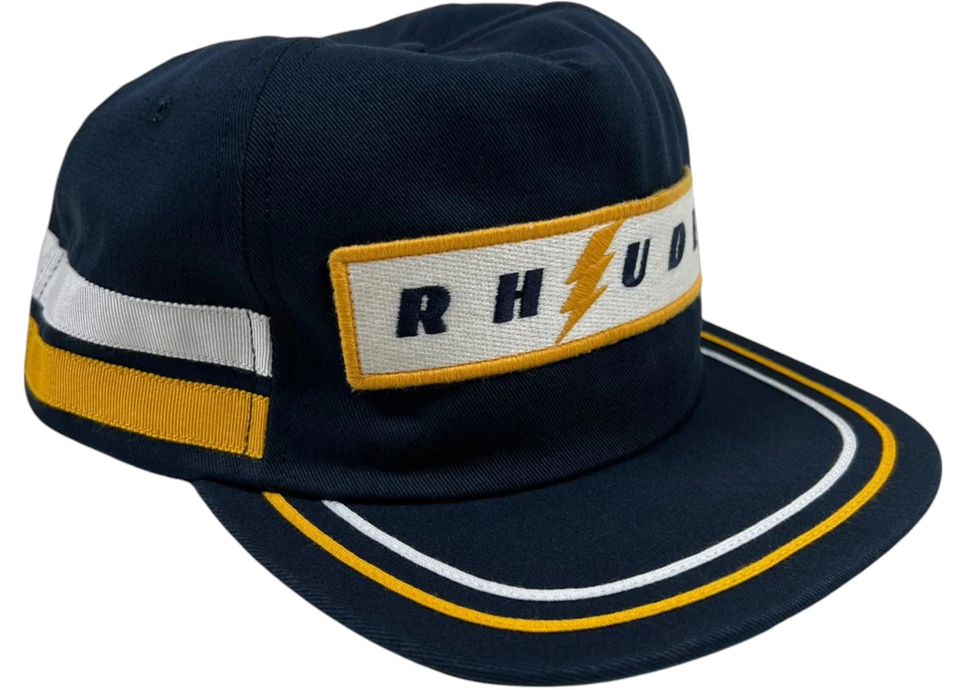 The Rhude Lighting Panel Hat Navy is now available at Side Kicks!