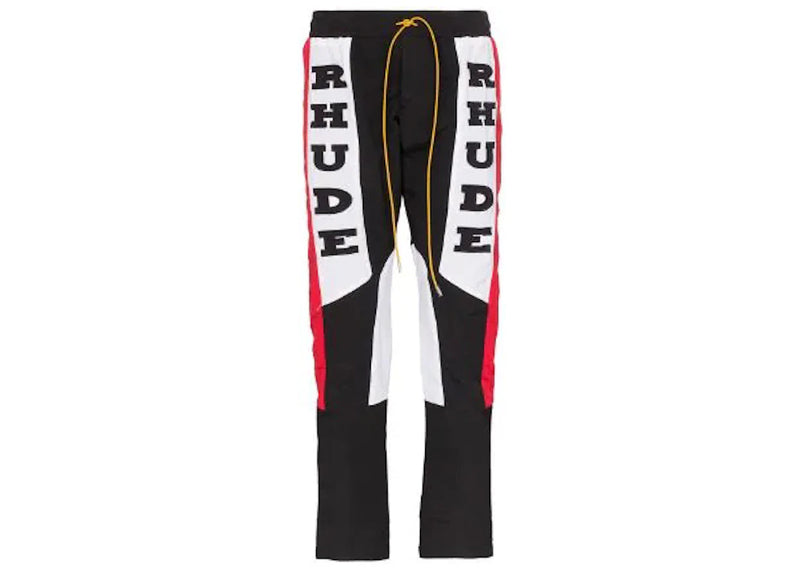 The Rhude Rhacing Logo Slim Fit Pants Black/Red is now available at Side Kicks!