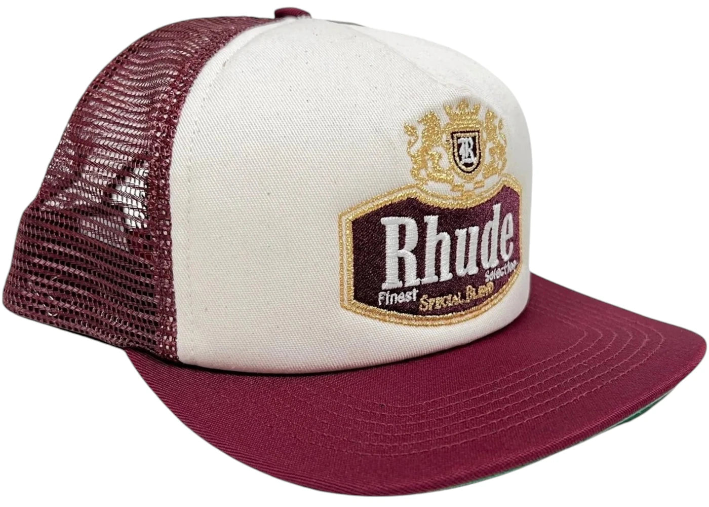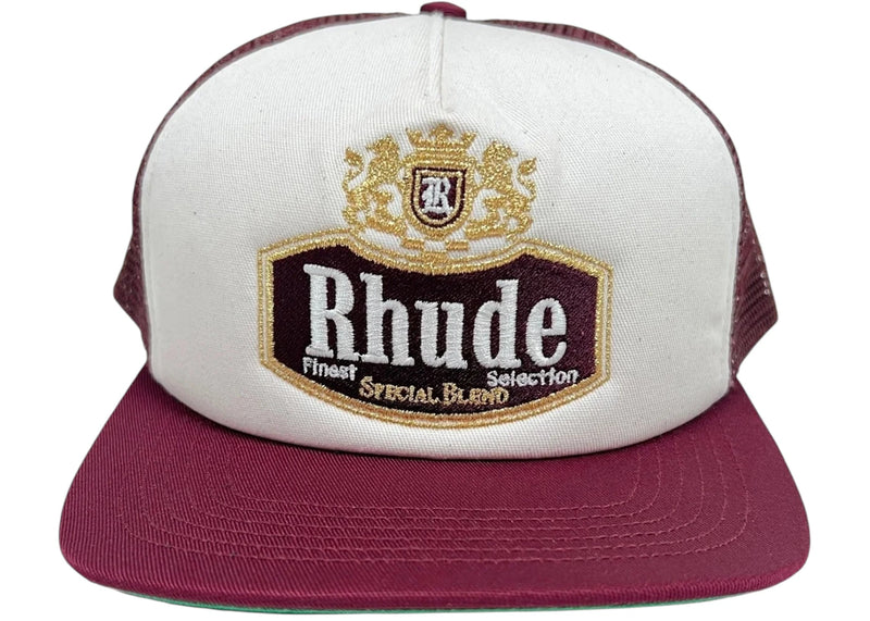 The Rhude Special-Blend Trucker Hat Maroon is now available at Side Kicks!