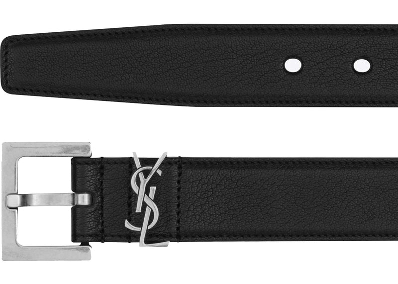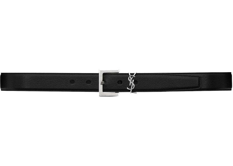 The Saint Laurent Cassandre Belt in Smooth Leather Black is now available at Side Kicks!