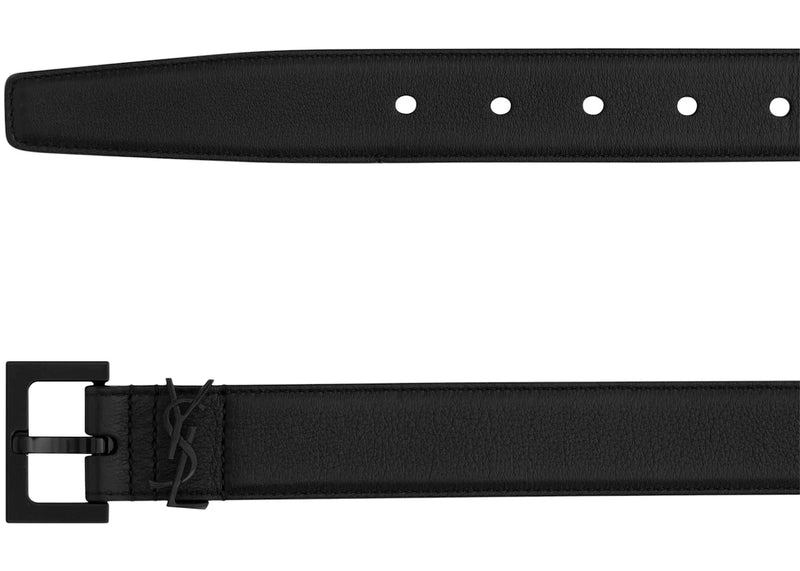 The Saint Laurent Cassandre Belt in Smooth Leather Black-tone Black is now available at Side Kicks!