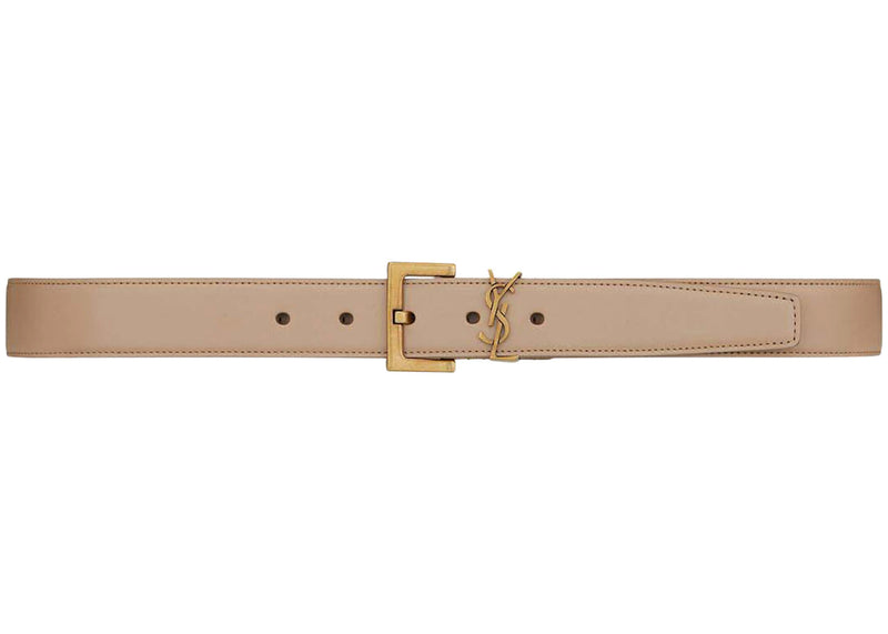 The Saint Laurent Cassandre Belt With Square Buckle In Shiny Box Saint Laurent Leather Dark Beige is now available at Side Kicks!