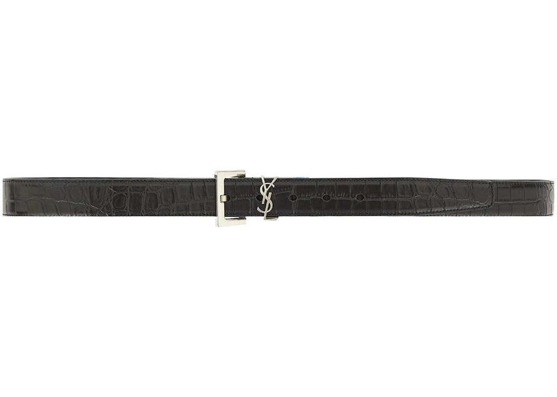 The Saint Laurent Cassandre Matte Crocodile Embossed Belt Black is now available at Side Kicks!