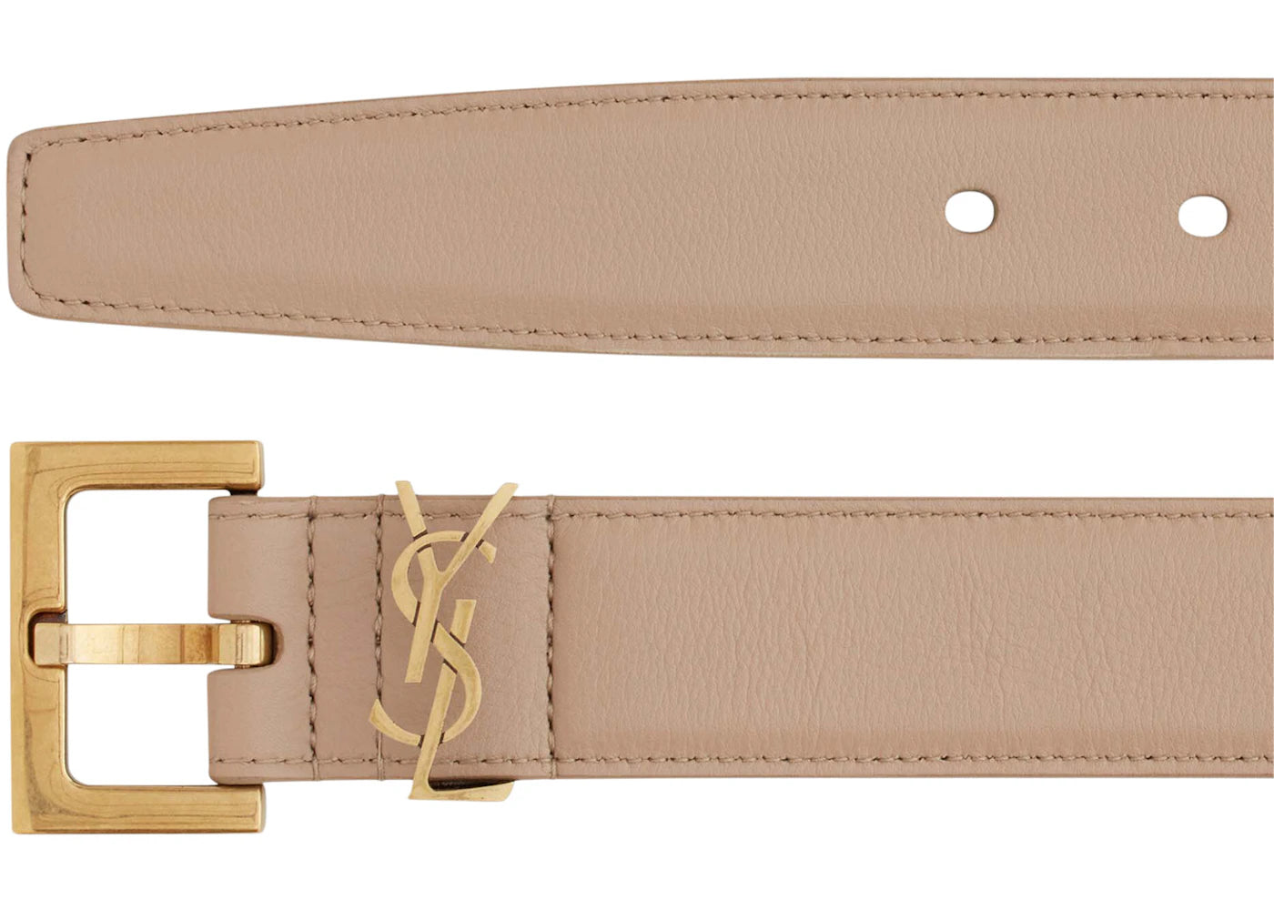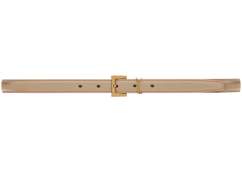 Saint Laurent Cassandre Thin Belt with Square Buckle in Box Saint Laurent Leather Dark Beige