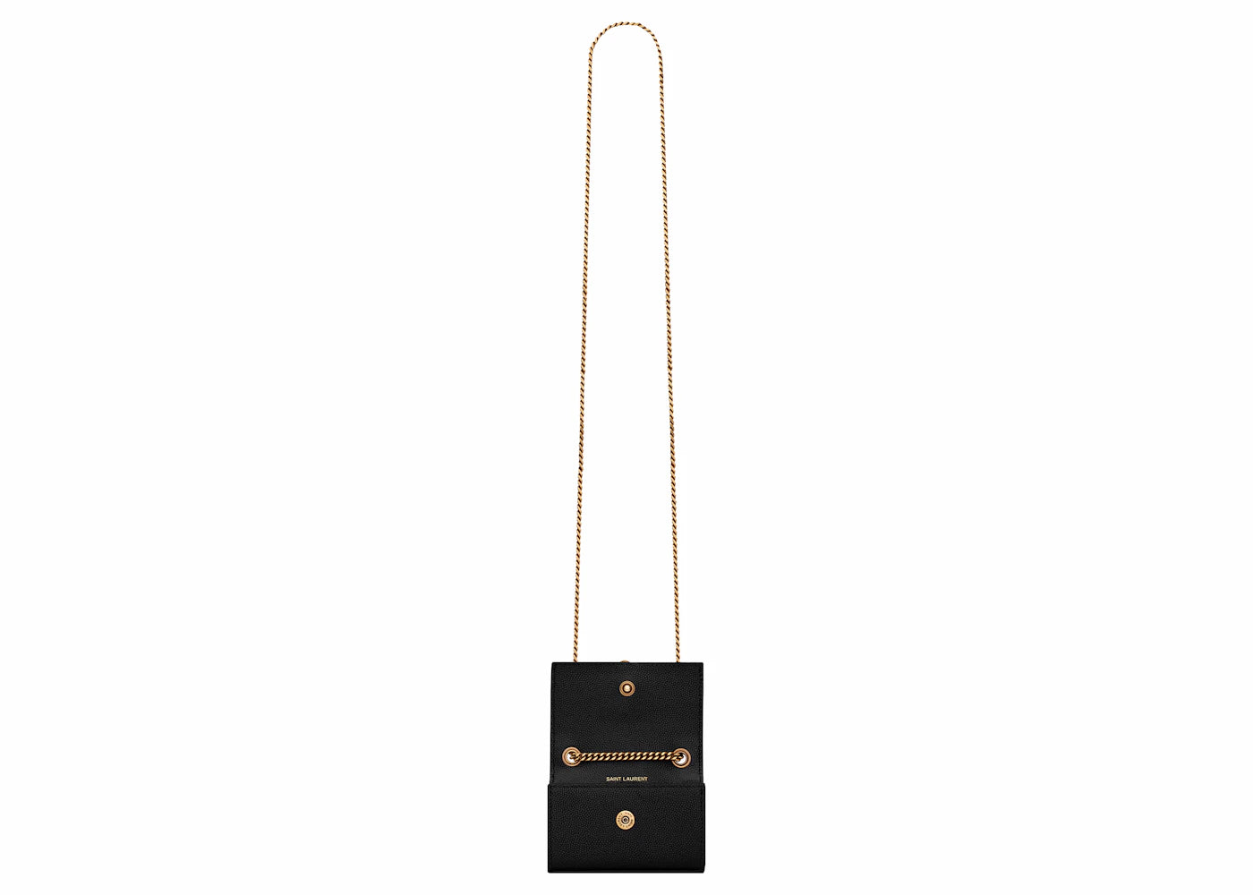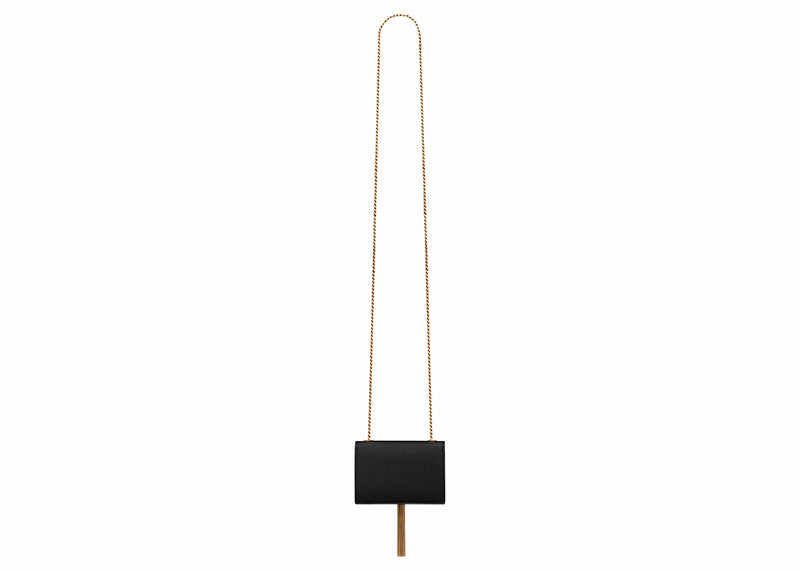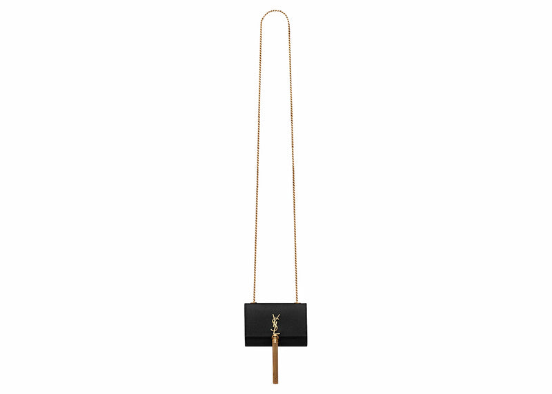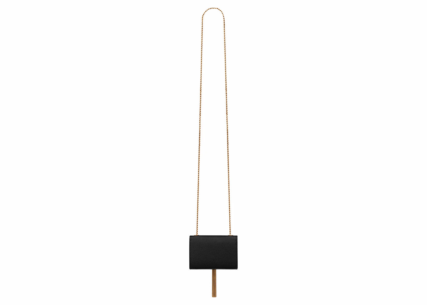 The Saint Laurent Kate Tassel Airpods Micro Bag In Embossed Leather Noir is now available at Side Kicks!