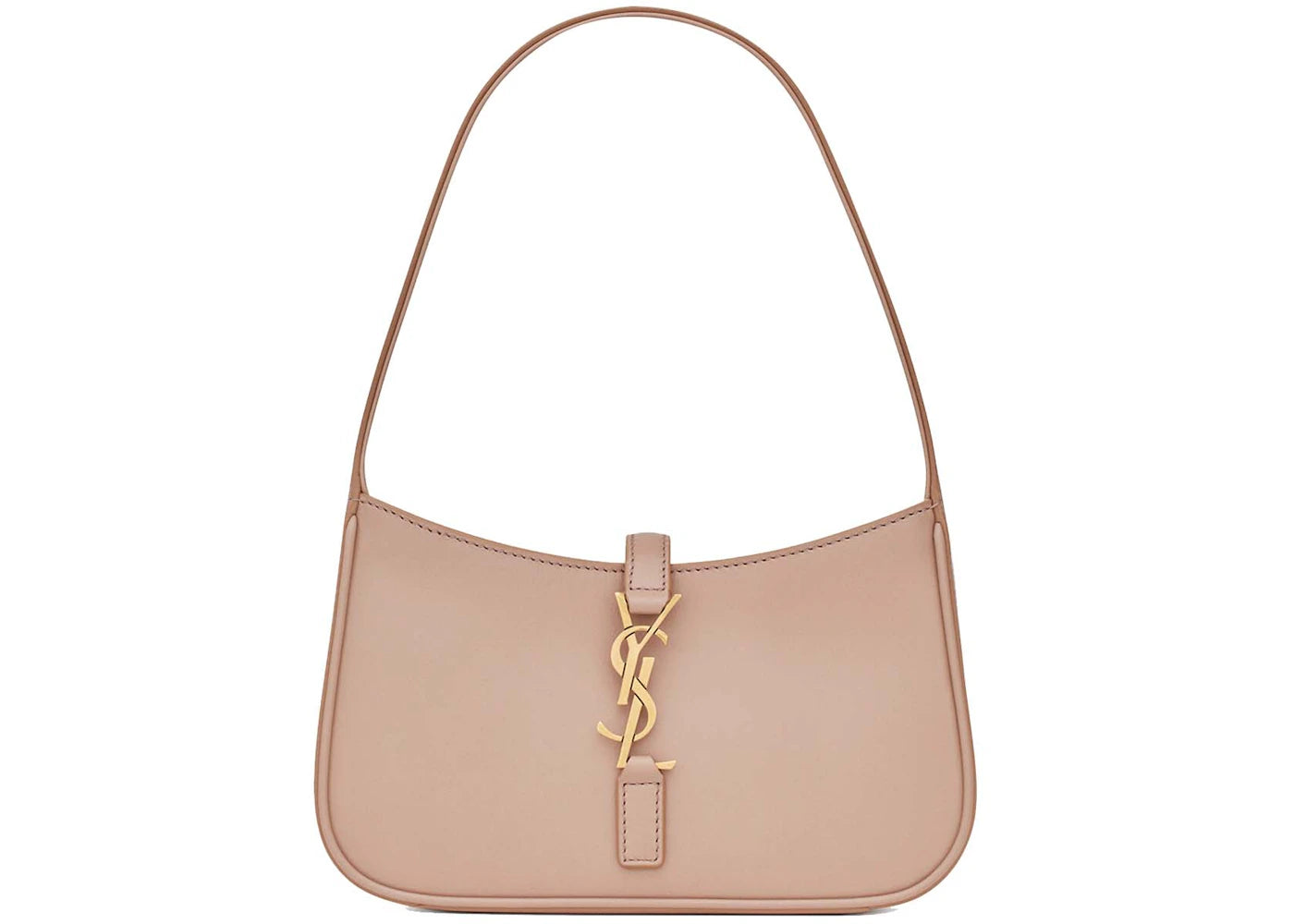 The Saint Laurent Le 5 A 7 Mini Hobo Bag In Smooth Leather Rosy Sand is now available at Side Kicks!