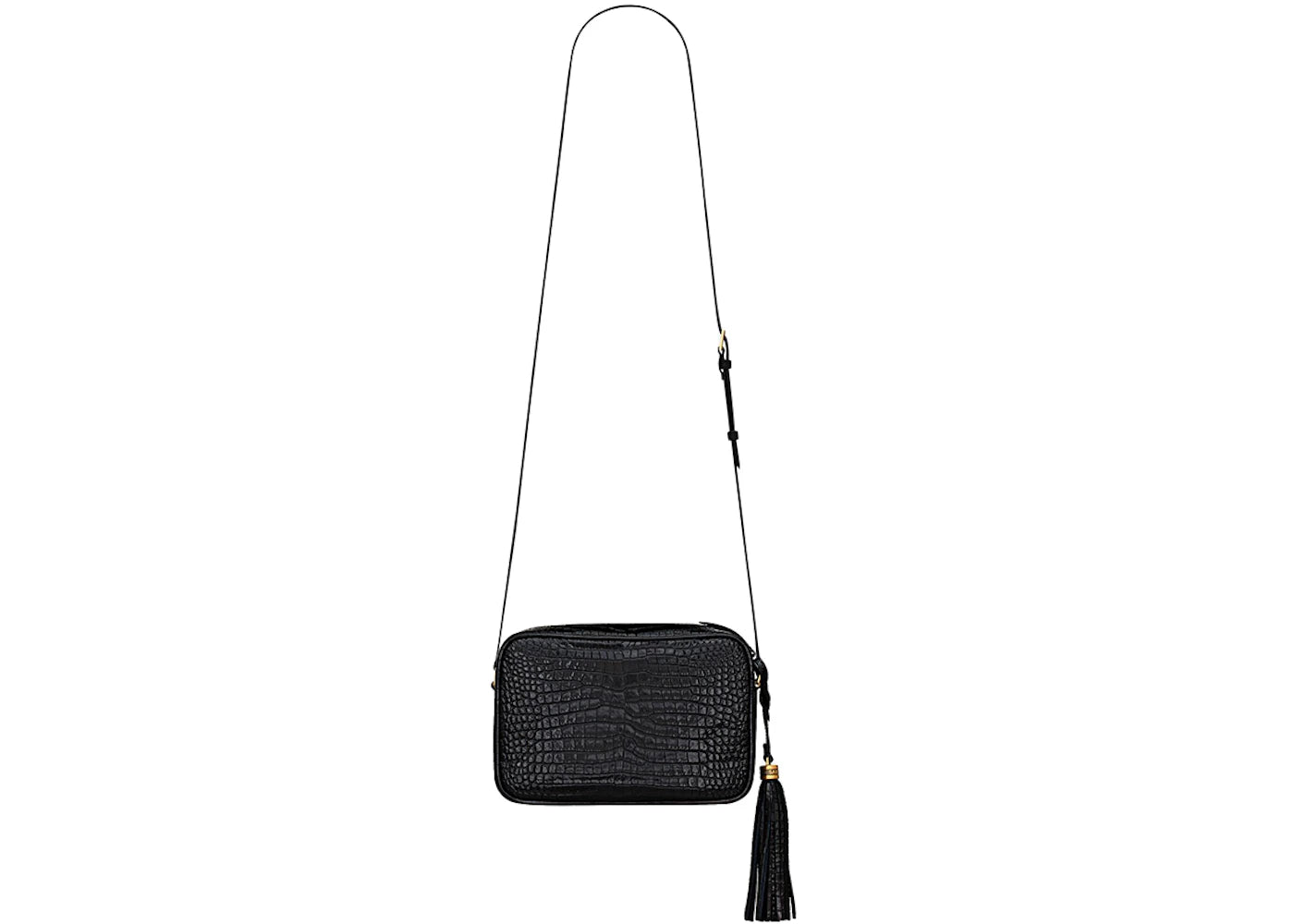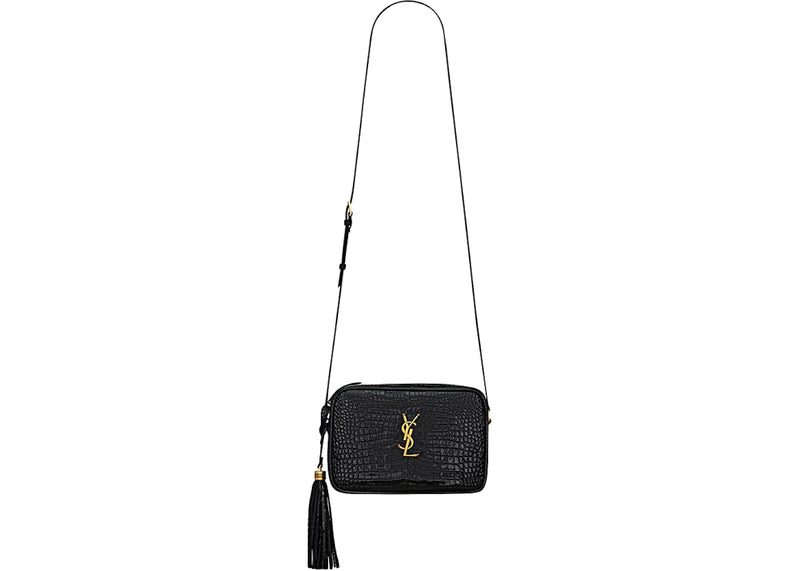 Saint Laurent Lou Camera Bag In Crocodile-Embossed Shiny Leather Black