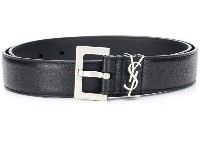 The Saint Laurent Monogram Square-Buckle Belt Silver-tone Black is now available at Side Kicks!