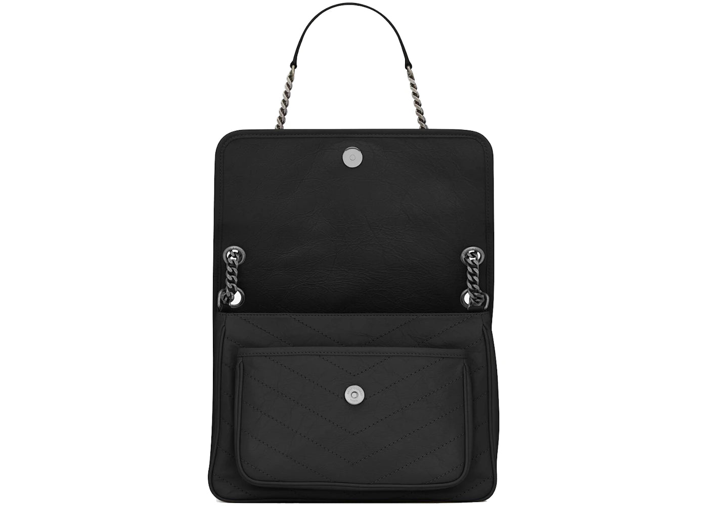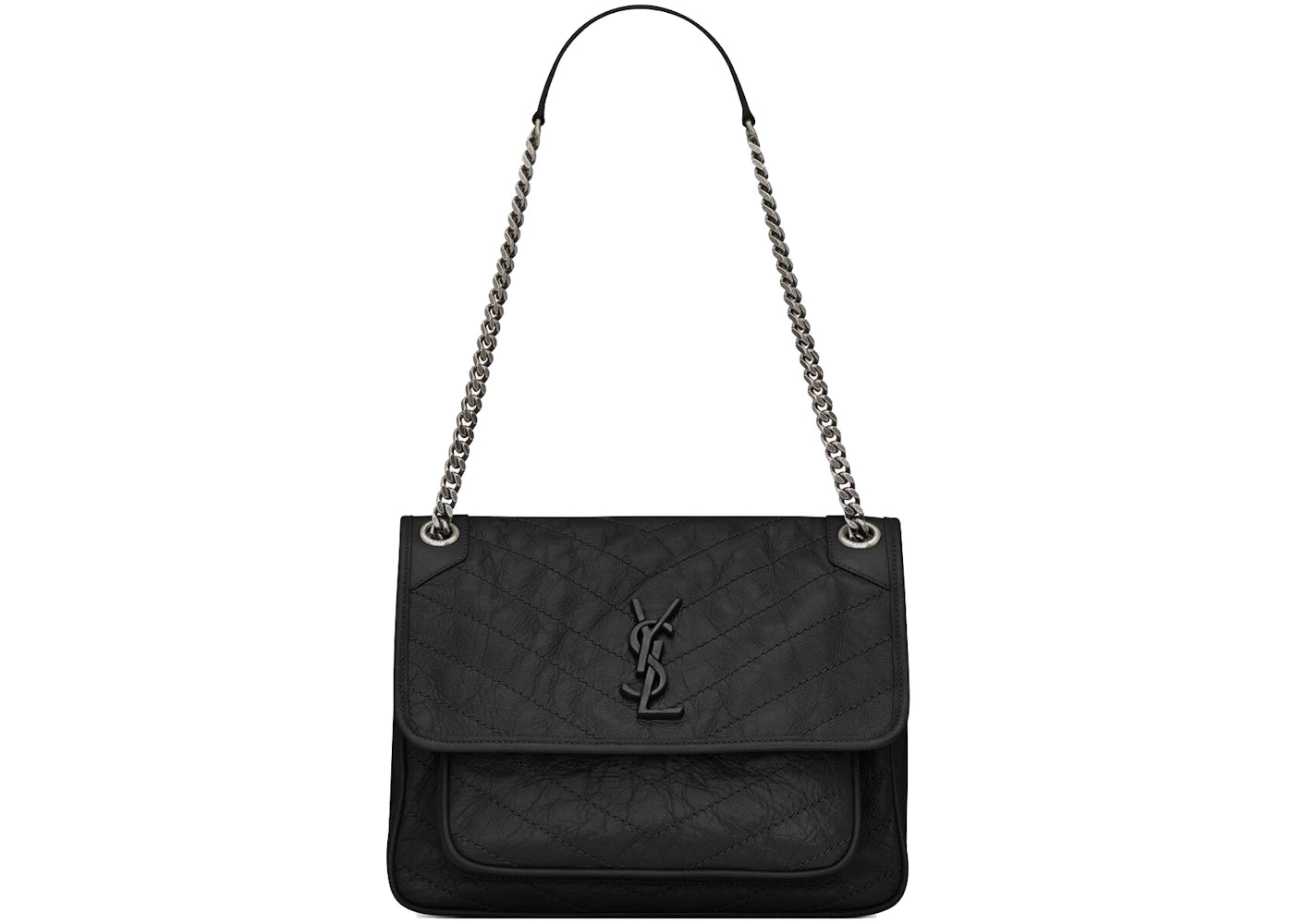 The Saint Laurent Niki Shoulder Bag Medium Crinkled Vintage Black is now available at Side Kicks!