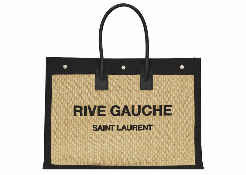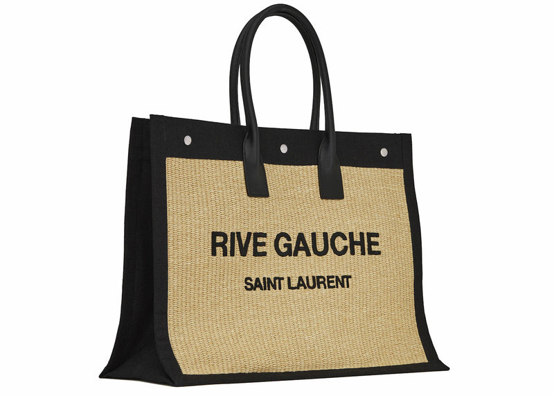 The Saint Laurent Rive Gauche Emroidered Raffia Tote Bag Beige is now available at Side Kicks!