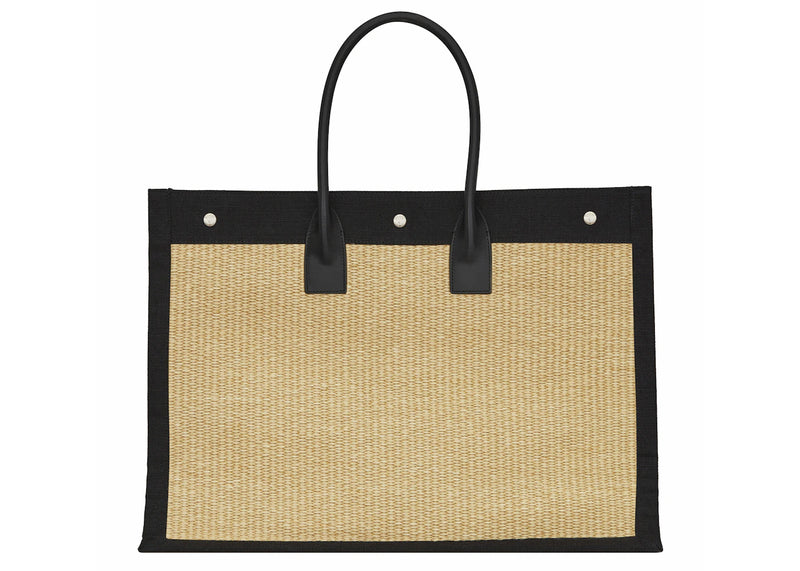 Saint Laurent Rive Gauche Emroidered Raffia Tote Bag Beige