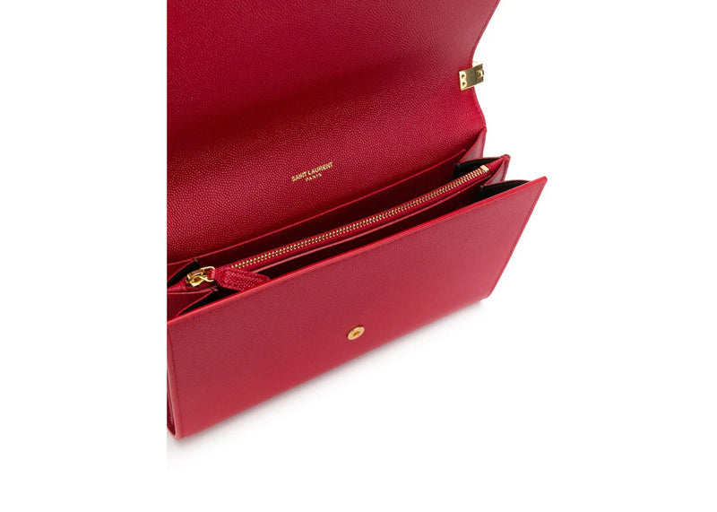 The Saint Laurent Uptown Strap Bag Grain de Poudre Embossed Leather Mini Eros Red is now available at Side Kicks!
