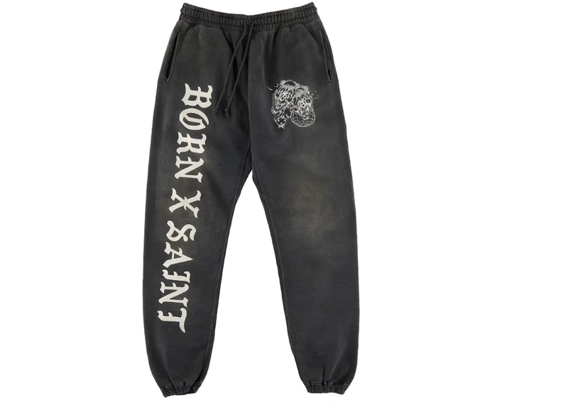 The Saint Mxxxxxx x Born X Raised Sweatpants Vintage Black is now available at Side Kicks!