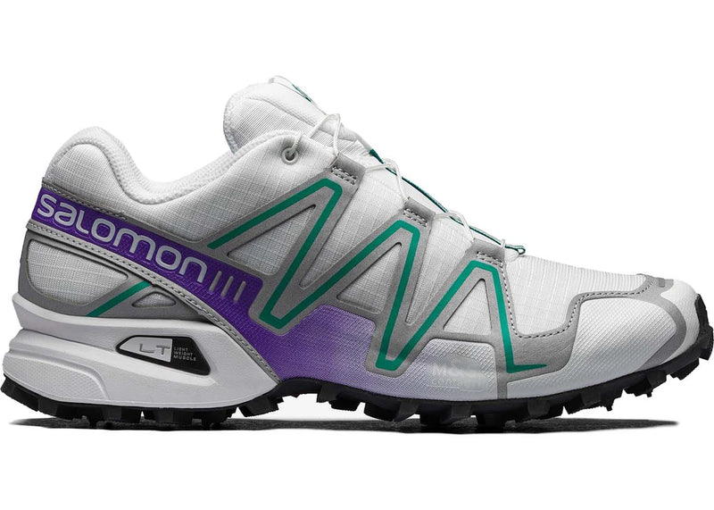 The Salomon Speedcross 3 White Silver Purple Green is now available at Side Kicks!