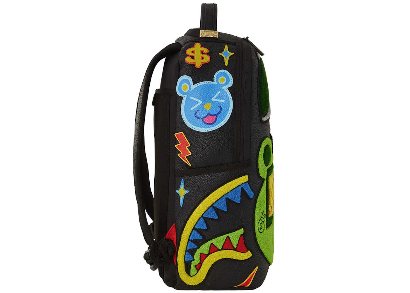 The Sprayground Colorful Money Bear Cheneille DLXSV Backpack Black/Green is now available at Side Kicks!