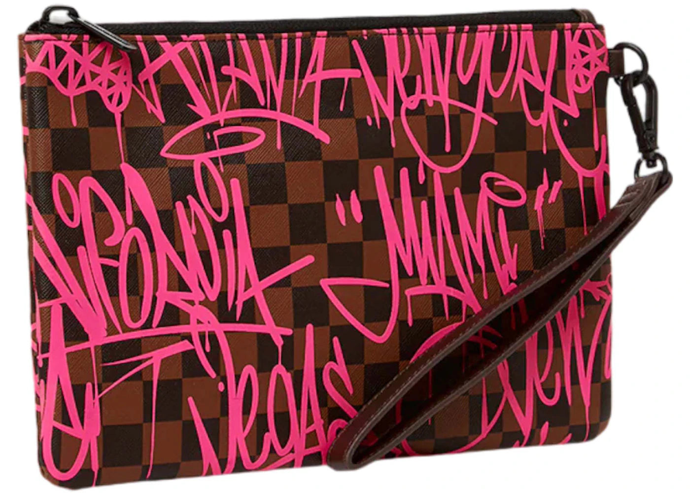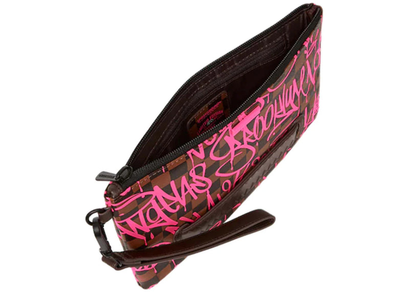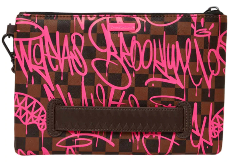 The Sprayground Jetgraphix Sharks In New York Crossover Clutch Brown/Pink is now available at Side Kicks!