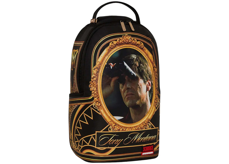 The Sprayground Scarface I See Every Move Binoculars Tony Montana Backpack Black/Gold is now available at Side Kicks!