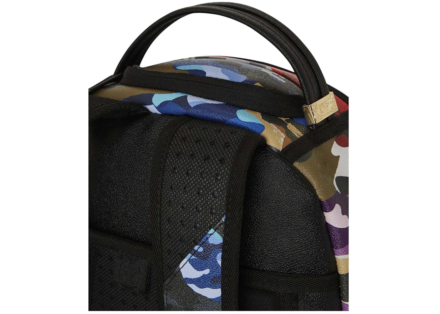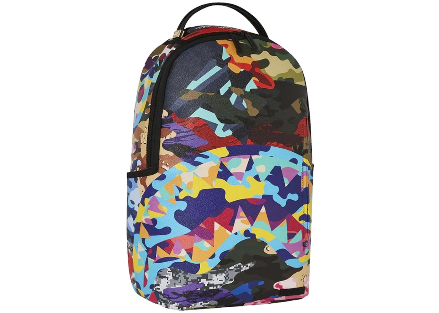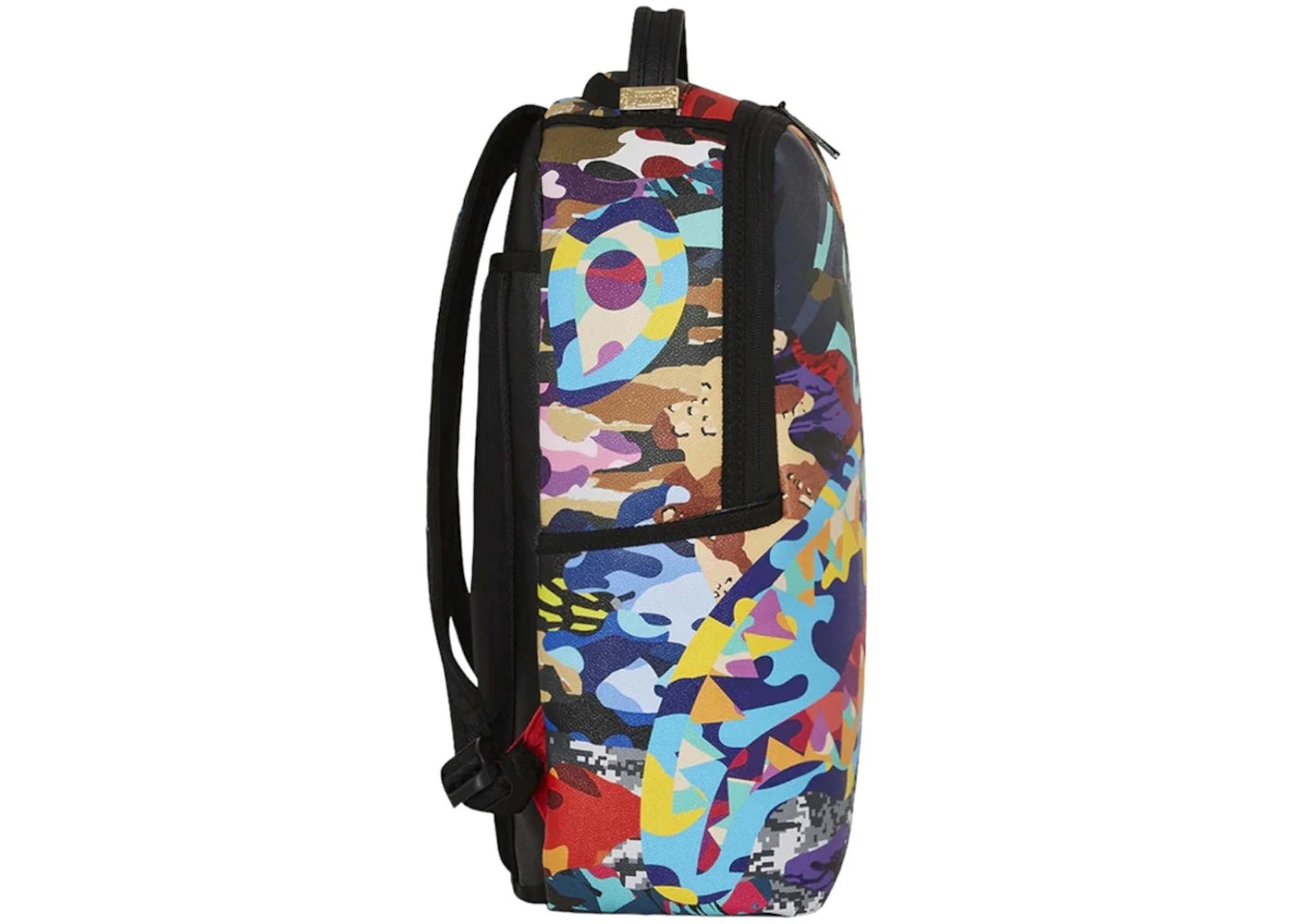 The Sprayground Sliced And Diced Camo Backpack Multi Camo is now available at Side Kicks!