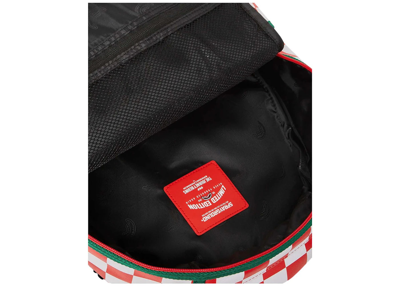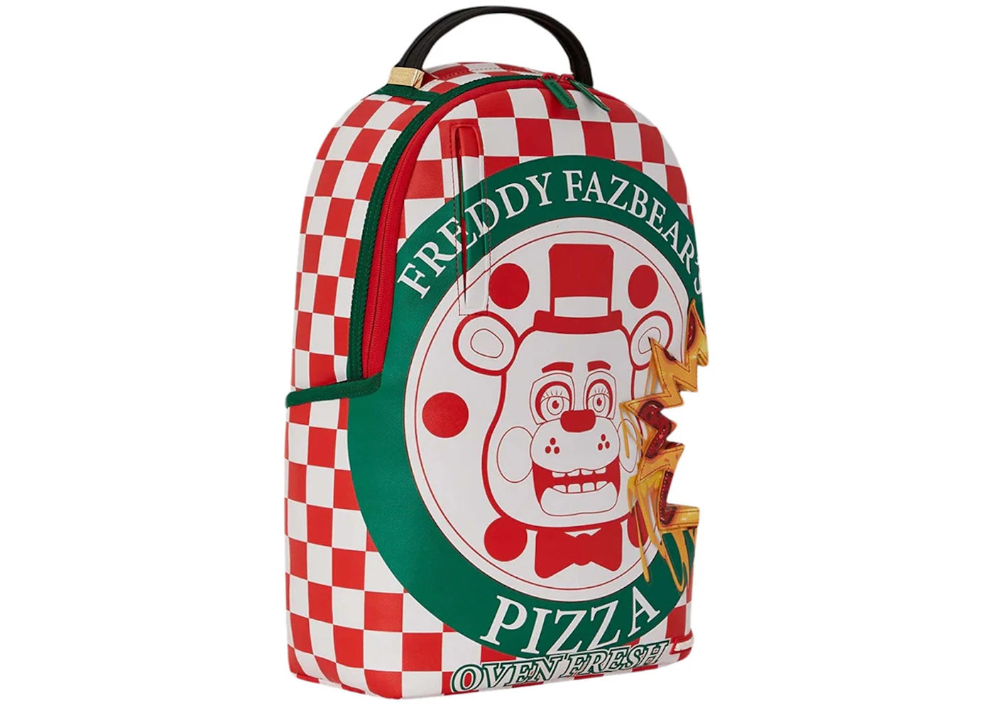 The Sprayground x Five Nights at Freddy's Pizza Takeout (DLXV) Backpack Red/White/Green is now available at Side Kicks!
