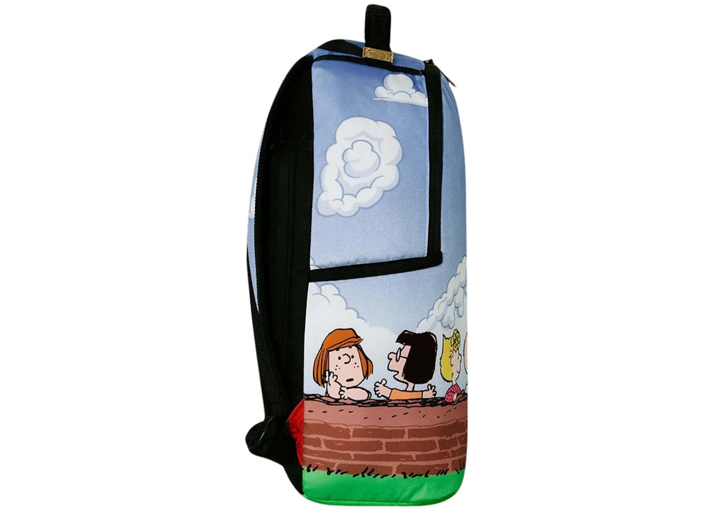 The Sprayground x Peanuts Fam (DLXSR) Backpack Blue is now available at Side Kicks!