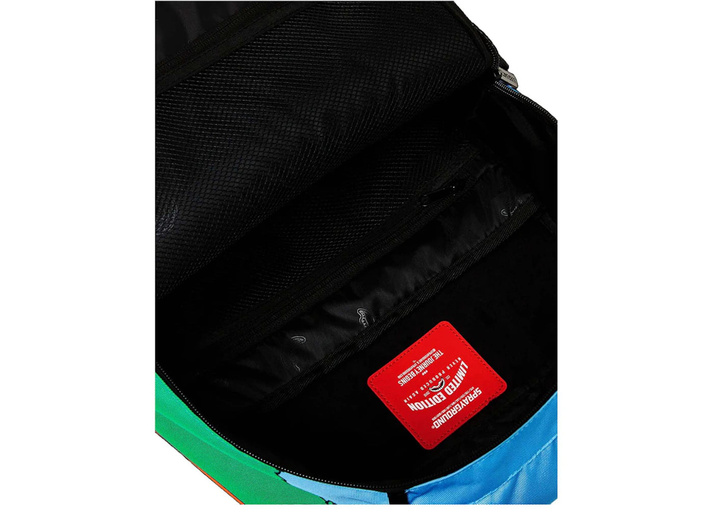 The Sprayground x Smurfs Mushroom Village (DLXSR) Backpack Multi is now available at Side Kicks!
