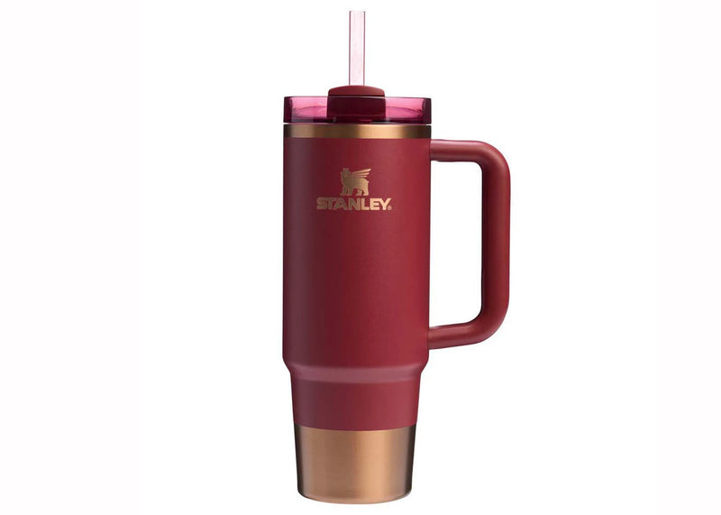 The Stanley Comfort & Joy Collection Flowstate Holiday Quencher 30oz Tumbler Gilded Pomegranate is now available at Side Kicks!
