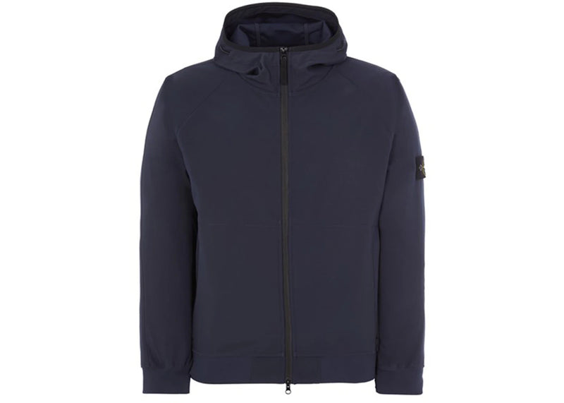 The Stone Island 40927 Light Soft Shell-R E.Dye Technology In Recycled Polyester Jacket Navy Blue is now available at Side Kicks!