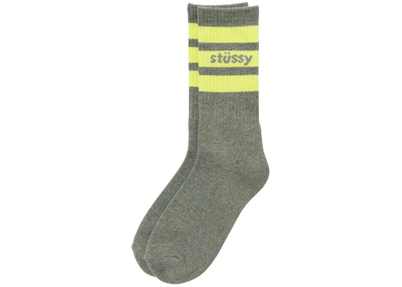 The Stussy Sport Crew Socks Grey Heather/Lime is now available at Side Kicks!