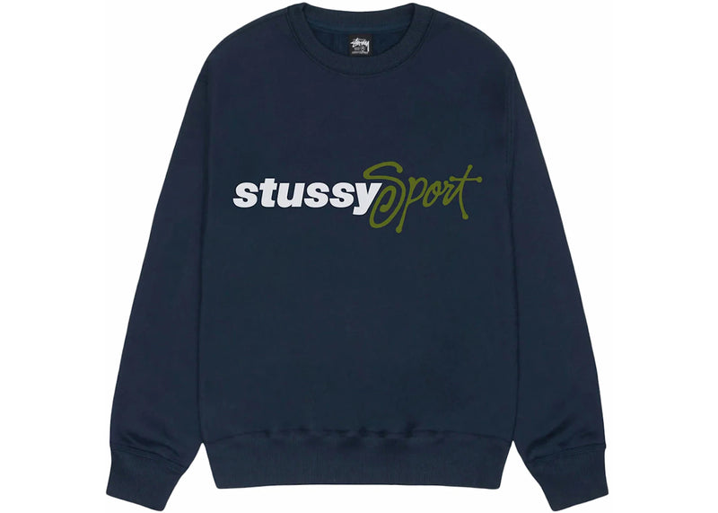 The Stussy Sport Script Crew Navy is now available at Side Kicks!