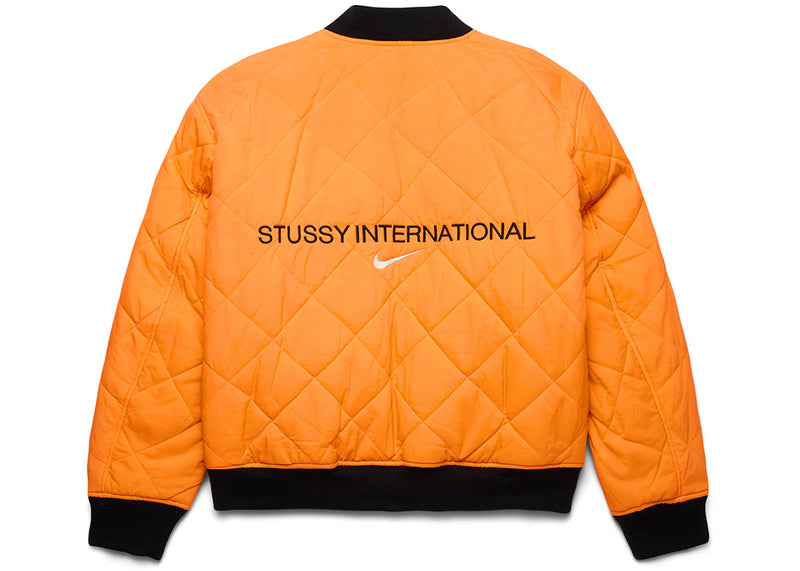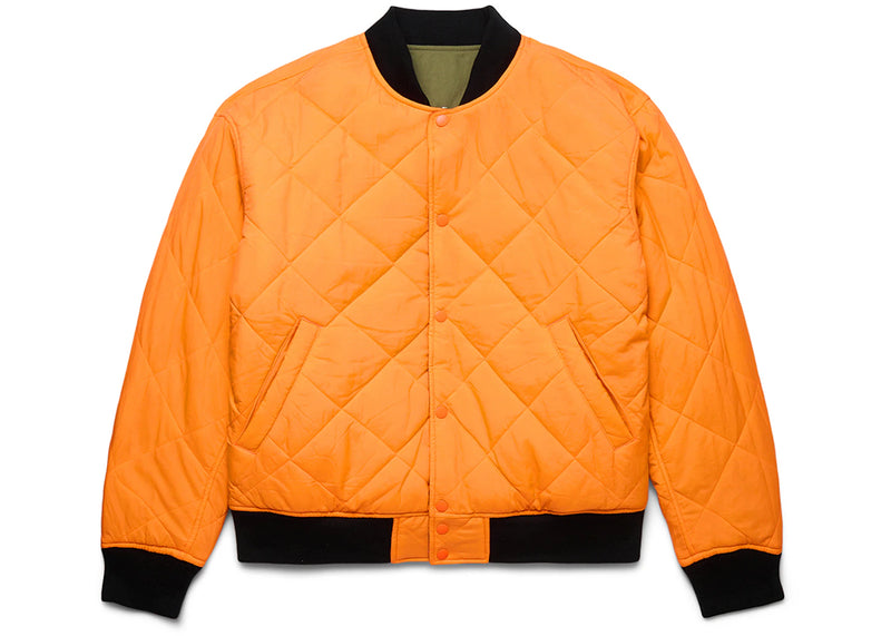 The Stussy x Nike Reversible Varsity Jacket Medium Olive/Bright Mandarin is now available at Side Kicks!