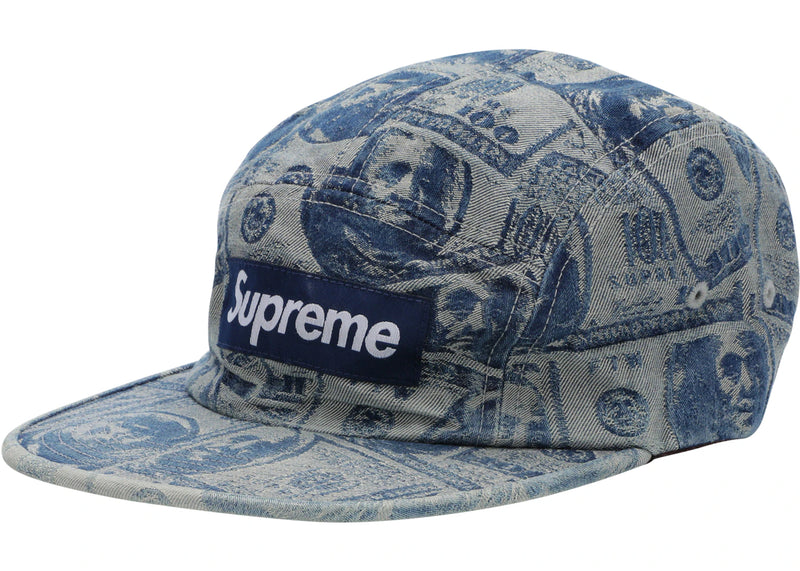 Supreme 100 Dollar Bill Camp Cap Blue