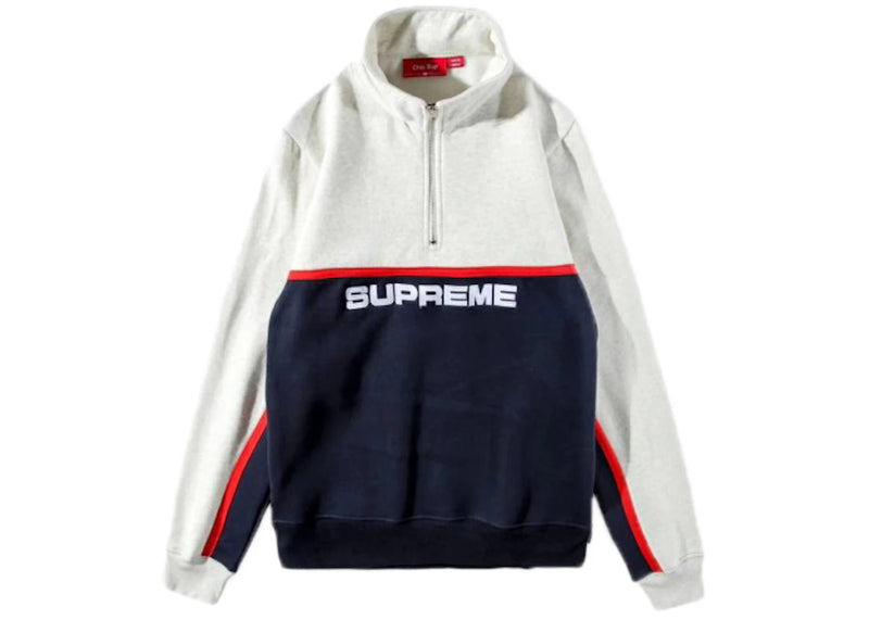 The Supreme 2-Tone Half Zip Sweatshirt Navy is now available at Side Kicks!