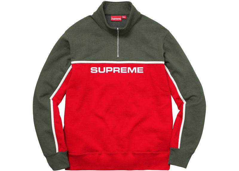 The Supreme 2-Tone Half Zip Sweatshirt Red is now available at Side Kicks!