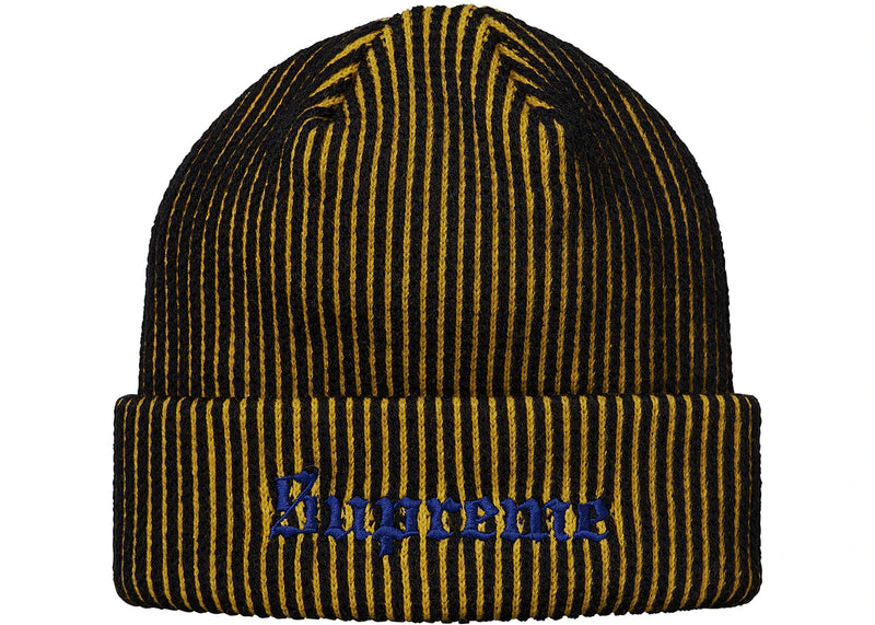 The Supreme 2-Tone Rib Beanie Mustard is now available at Side Kicks!