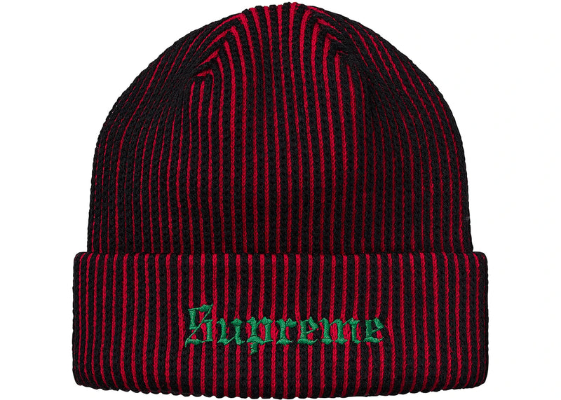 The Supreme 2-Tone Rib Beanie Red is now available at Side Kicks!