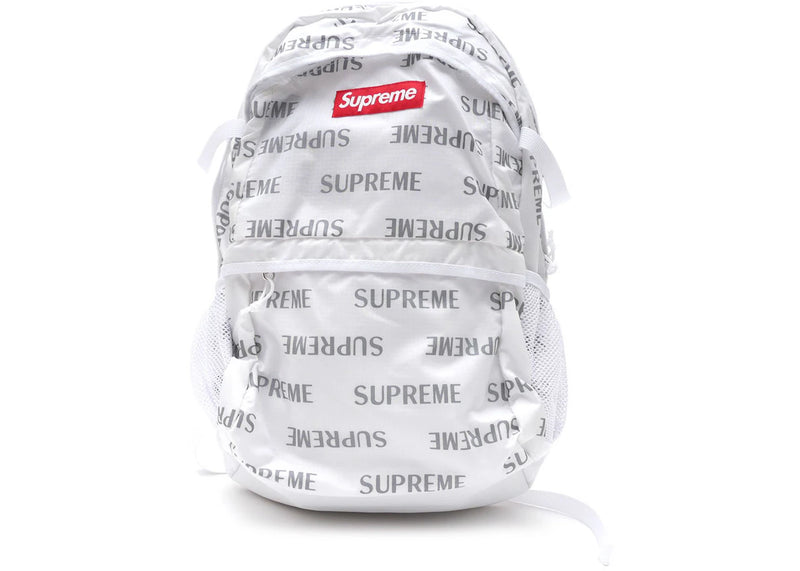 The Supreme 3M Reflective Repeat Backpack White is now available at Side Kicks!