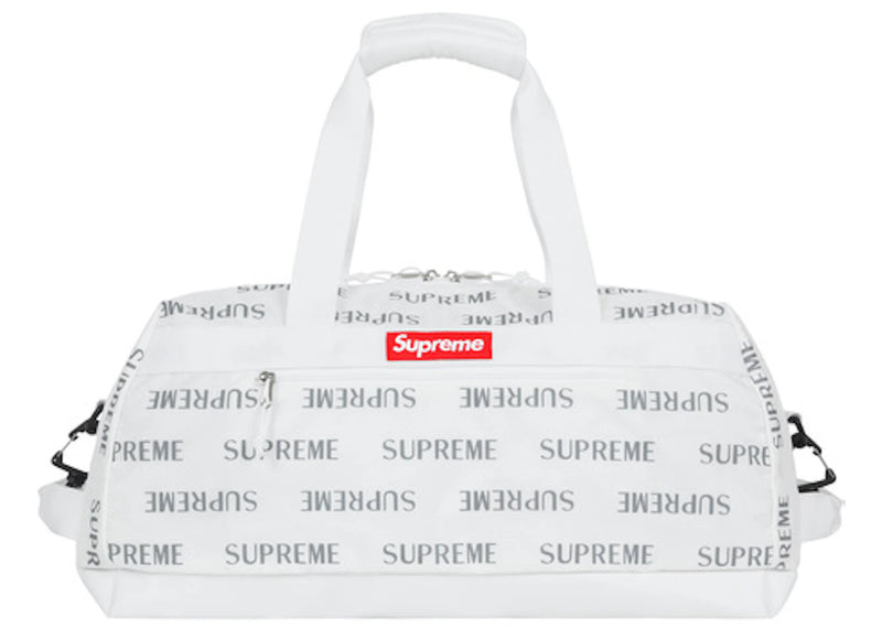 The Supreme 3M Reflective Repeat Duffle Bag White is now available at Side Kicks!